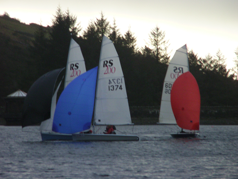 A South Easterly forecast with rain could have put a few off especially those who know what a mess it can make of the breeze on the lake but after a little hesitation from the older hands, youth took over and a fleet of 13 dinghies set off up the lake for the start line through the gusts, lulls, shifts and showers.